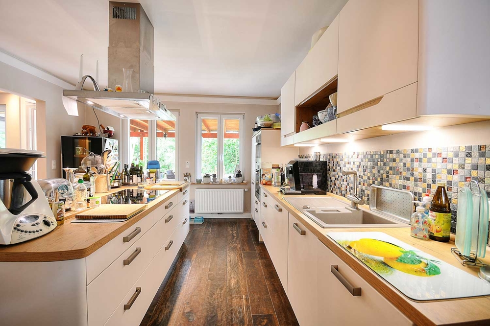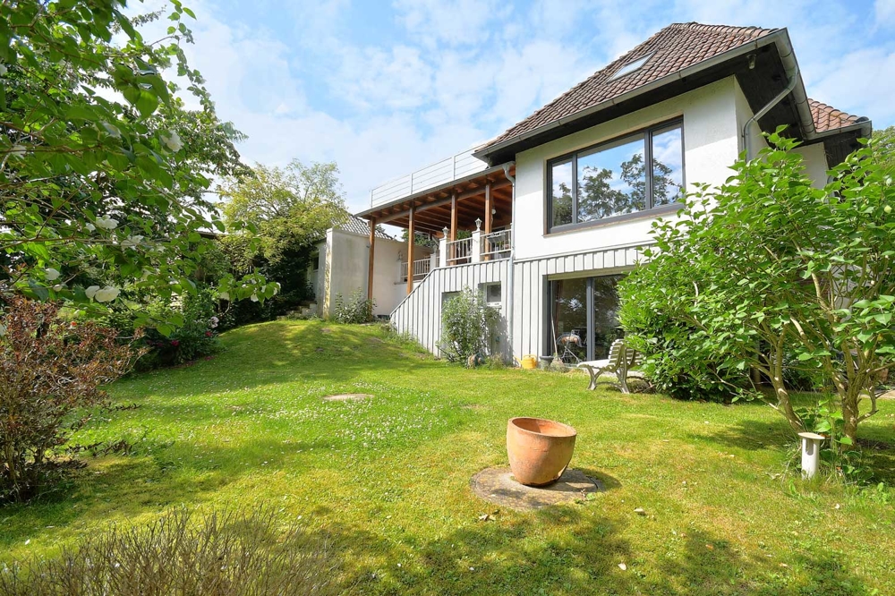 Provisionsfreier Verkauf! Willkommen in dieser besonderen Immobilie in 23558 Lübeck-Buntekuh! Das großzügige Einfamilienhaus bietet mit insgesamt 257 m2 und seinen zehn Zimmern inklusive einer separaten Einliegerwohnung im Souterrain reichlich Platz für große Familien, Mehrgenerationenkonzepte oder Wohnen und Arbeiten unter einem Dach. Die Immobilie liegt in Hanglage auf einem beeindruckenden, rund 2.846 m2 großen Grundstück – naturbelassen, mit direktem Zugang zur Trave und eigenem Steg: ein Paradies für Naturliebhaber, Ruhesuchende oder Wassersportfreunde. Das Haupthaus verfügt über fünf bis sechs Schlafzimmer, zwei separate Büroräume sowie eine offene, moderne Einbauküche mit Kamin und herrlichem Blick in die Natur. Die Verbindung von Offenheit und Gemütlichkeit zieht sich durch alle Ebenen des Hauses. Die Einliegerwohnung im Souterrain hat einen eigenen Eingang, ist aber auch über eine interne Treppe mit dem Haupthaus verbunden. Sie besteht aus zwei Zimmern mit Zugang zum Garten, einer gut ausgestatteten Einbauküche mit Essplatz sowie einem kleinen Bad – ideal als separate Wohneinheit für erwachsene Kinder, Gäste oder zur Vermietung. Eine Privatstraße führt zum Haus, wo eine Doppelgarage und ein Doppelcarport auf dem Grundstück zur Verfügung stehen. Der große Keller bietet zusätzliche Abstellflächen sowie vielseitige Nutzungsmöglichkeiten. Dieses Anwesen vereint Großzügigkeit, Lage und Potenzial – ein echtes Unikat mit direktem Wasserzugang und vielen Wohnkonzepten. Haben wir Ihr Interesse geweckt? Gern stehen wir für eine Besichtigung zur Verfügung. Zusätzlich unterstützen wir Sie zum Thema Finanzierung und kümmern uns um die Vermarktung ihrer jetzigen Immobilie. Bitte füllen Sie die Kontaktformulare der Immobilienportale VOLLSTÄNDIG aus, danke. Wir freuen uns auf Ihre Kontaktaufnahme.